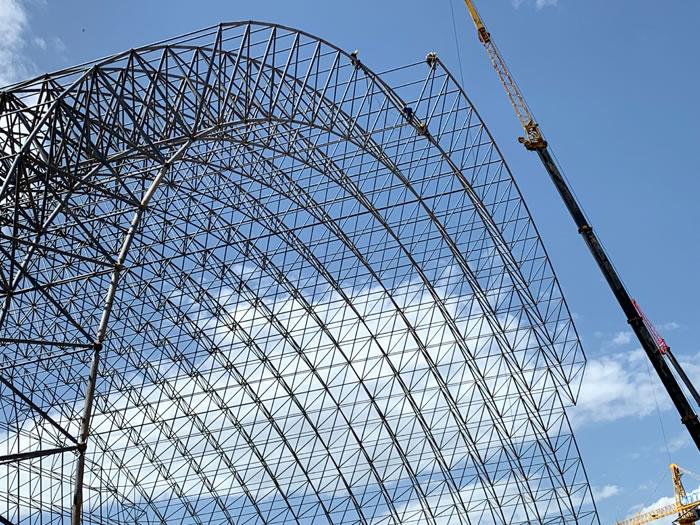 (2)网架加工前应对现场尺寸进行复测,确认无误后方可进行加工、安装;网架制作、运输、安装应遵守《空间网格结构技术规程》JGJ7-2010、《钢网架琼海螺栓球节点》JG/T 10-2009、《钢网架琼海螺栓球节点用高强度螺栓》 GB/T 16939-2016、《琼海钢结构琼海工程琼海施工规范》 GB50755-2012、《琼海钢结构琼海工程琼海施工质量验收标准》 GB50205-2020。